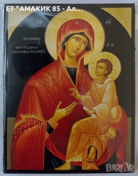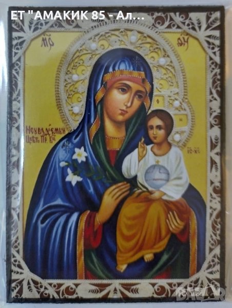 Предлагам магнитни икони с размери 8 см височина, 6 см ширина и 0,7 см дебелина. Видовете икони които предлагам са: Иисус Христос, Св. Богородица - Достойно ест, Седмострелна, Скоропослушница, Неувяхващ цвят, Живоприемен Источник, Иверска, Владимирска; Св. Св. Вяра, Надежда и Любов; Св. Петка; Св. Неделя; Св. Андрей Първозвани, Св. Анна, Св. Пантелеймон.