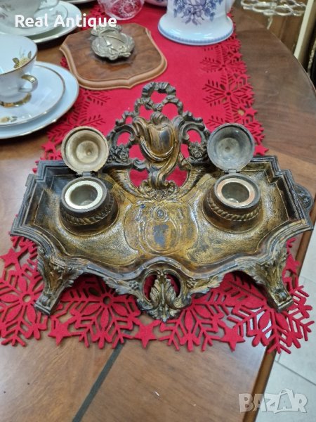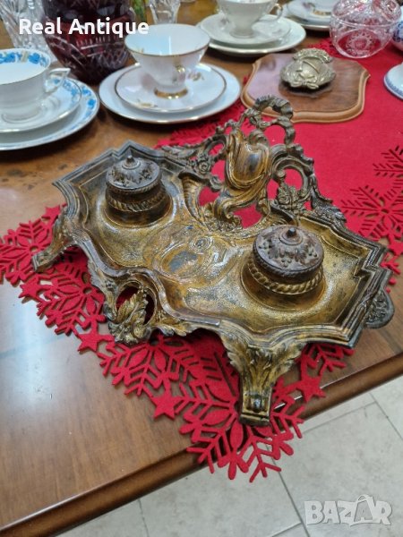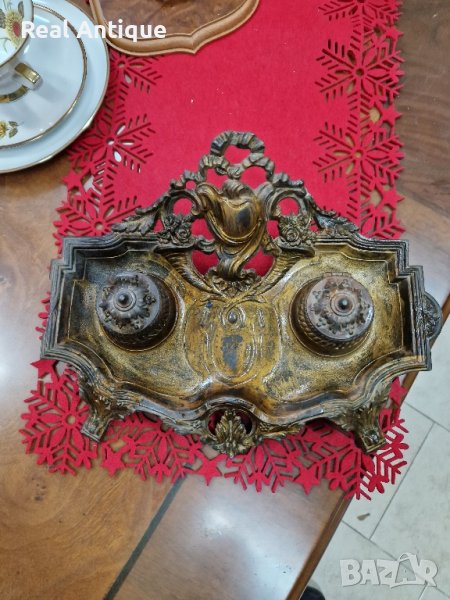 Продавам много красива антикварна френска масивна мастилница от 19 век в много добро състояние с наличните маркировки. Дължина 30 см ширина 23 см. Прекрасно допълнение към интериора на Вашия дом офис вила. Подходяща и за подарък. Работя с всички куриери. Отговарям бързо.