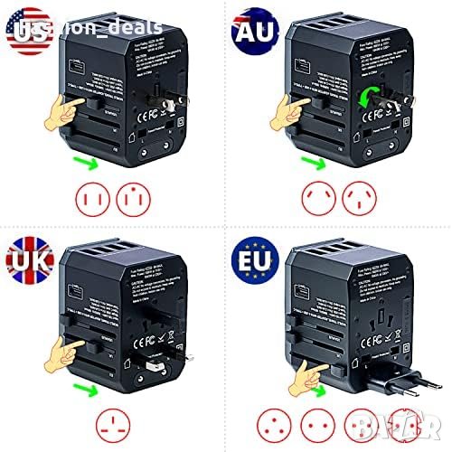 Нов Мултифункционален Адаптер За Пътуване: UK, USA, Азия, ЕС, AU/CN + 5 USB