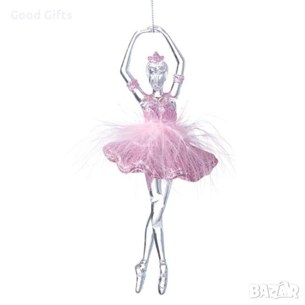 Украшение за коледно дърво, прозрачна балерина с блестяща рокля.