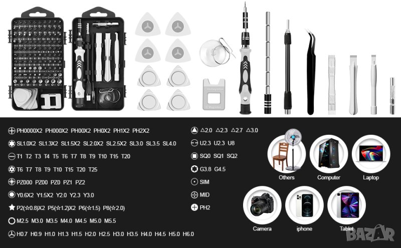 комплект 115 части отвертка битове инструменти за финни ремонти → Обява 42690873