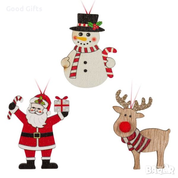 8 броя Комплект Дървени висулки за коледна елха, 6см