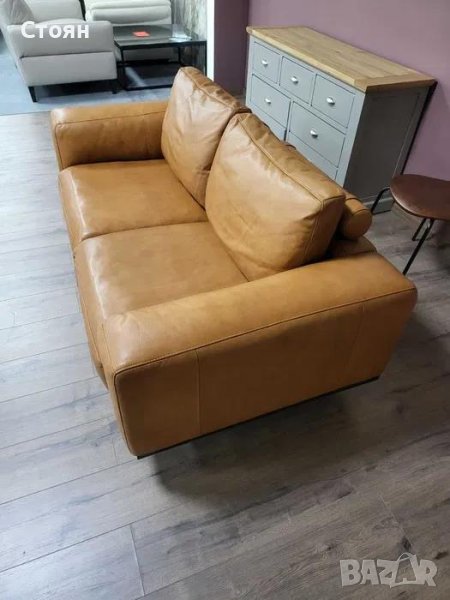 Светло кафяв кожен диван двойка - 100 % естествена кожа,