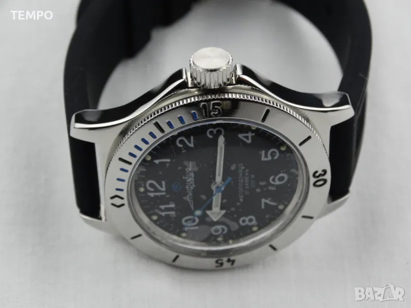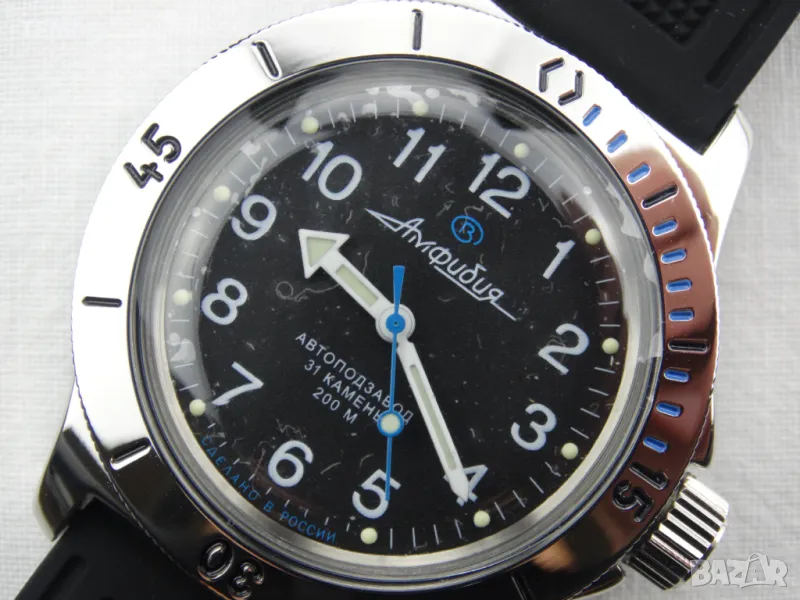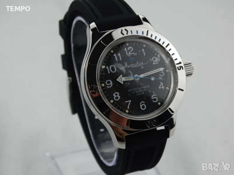 Часовниците Восток Амфибия издържат на най-екстремни натоварвания и удари, безпроблемна работа на дълбочина до 200 м в условия на значителни температурни колебания, във всякаква агресивна среда.