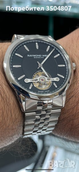 RAYMOND WEIL представя модел със смел отличителен дизайн, особено с ажурен циферблат, разкриващ регулиращия орган на 6 часа. Сглобката за баланс и пружина, поддържана от един мост, разкрива конструкция, повтаряща тази на най-красивите регулатори с турбийон. Осцилиращата му тежест е украсена с мотив „Côtes de Genève“ и е гравирана с логото на RAYMOND WEIL. Механизмът е конструиран по такъв начин, че да демонстрира красивия си механизъм от страната на циферблата. Стратегическите органи, разположени над основната плоча, и симетрията на моста подчертават архитектурната природа на този елегантен и красиво балансиран модел.