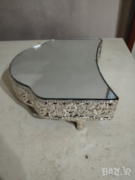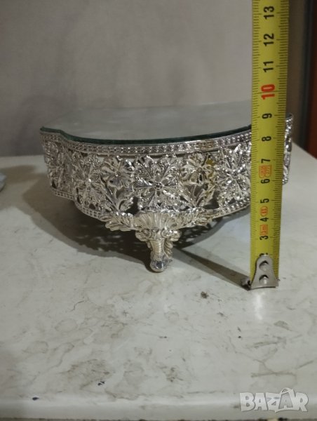 поставка,стойка в стил арт деко.посребрен метален корпус.огледален плот