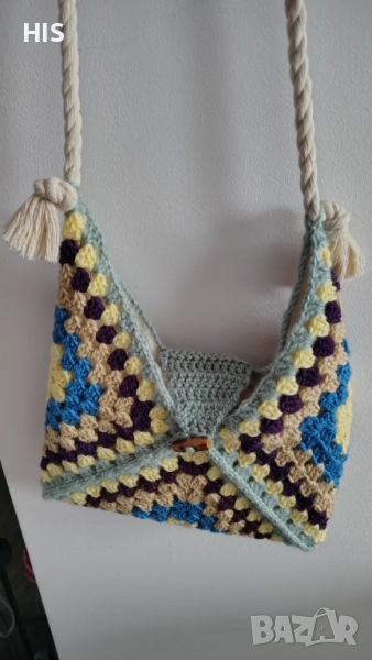 Ръчно изплетена чанта с дръжка за носене през рамо. Вътрешен джоб за моб.телефон. Изработена от памук и полиестер, което я прави лесна за поддръжка. Подходяща за всички сезони. Идея за подарък за предстоящите празници.