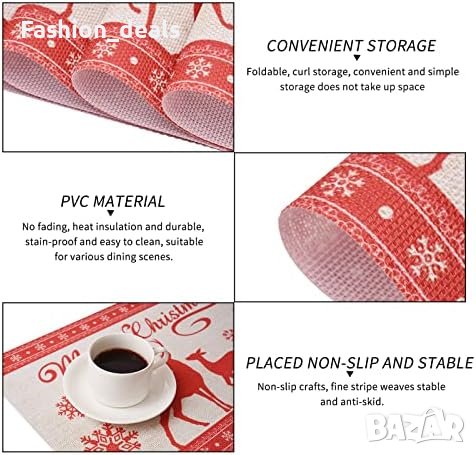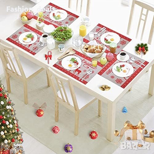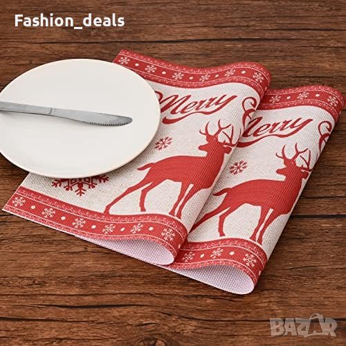 Нови 6 броя Коледни Подложки за Маса Декорация празнична трапеза Дизайн с еленчета Украса