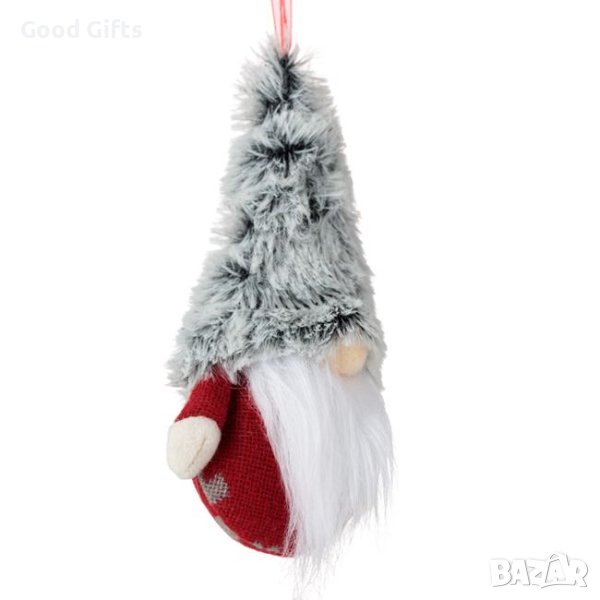 3 Броя Комплект Коледна украса за елха, Коледен гном със сива пухкава шапка и бяла брада