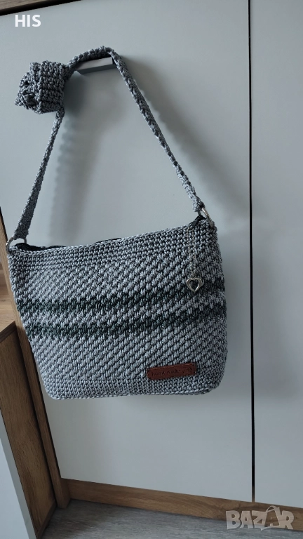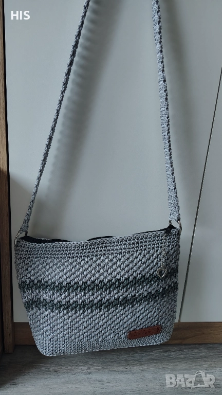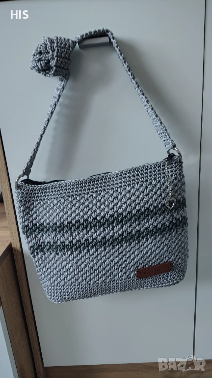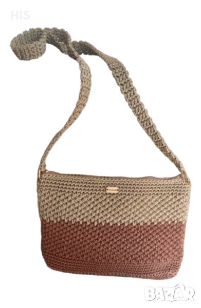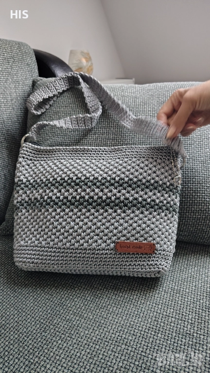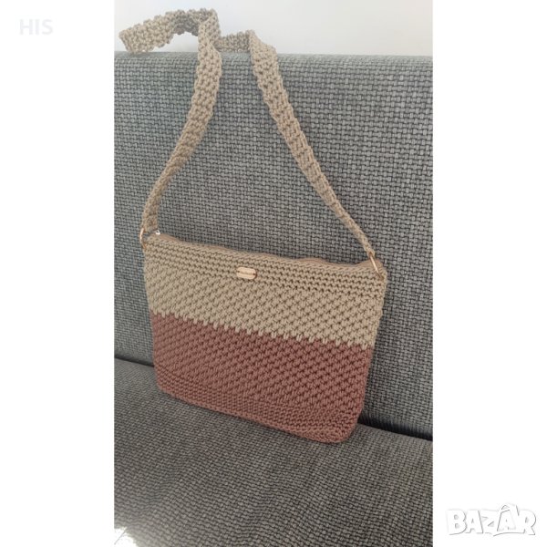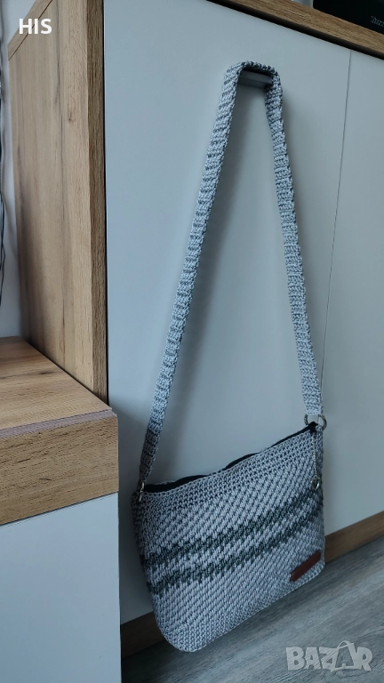 Ръчно изплетена с дълга дръжка за носене през рамо. Дървено лого с надпис Handmade. Лесна за поддръжка и актуална през всички сезони. Модерен дизайн.