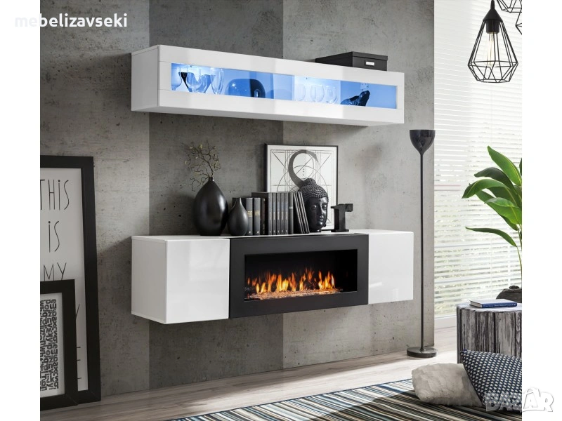 Нова! Модулна секция с камина FLY N2 (бял гланц/бяло) → Обява 42699875