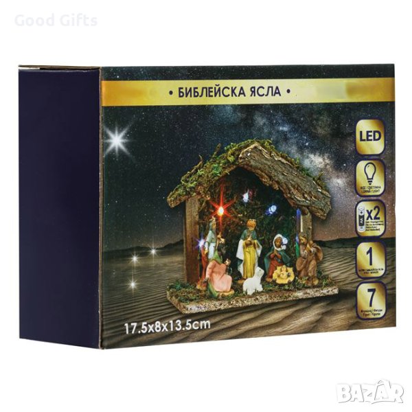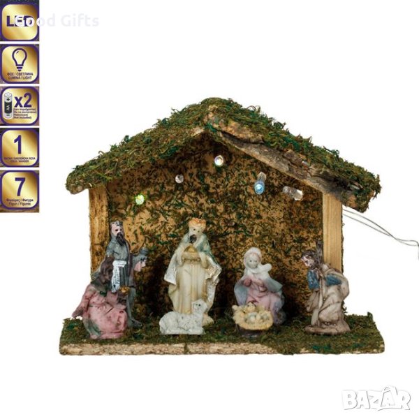 Коледна украса: Светеща Коледна ясла със 7 порцеланови фигури