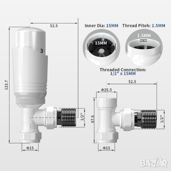 Получете белия термостатичен радиаторен вентил от Vancoco, изработен от първокласна сплав и пластмаса за издръжливост. Този TRV с 6 настройки осигурява прецизен контрол на температурата, предлагайки комфортна среда, като същевременно оптимизира сметките за отопление. С лесната си инсталация и възможностите за индивидуално отопление на стаята можете да осигурите ефективен зонов контрол без никакво окабеляване. Неговото цифрово лого и покритие от сплав осигуряват прецизни температурни настройки и удобен захват. Подходящ за различни радиатори, включително закачалки за хавлии, колонни радиатори и други, той може да се похвали с резбова връзка m30x1,5. Осигурете си топло и уютно пространство с модерната TRV технология на Vancoco.