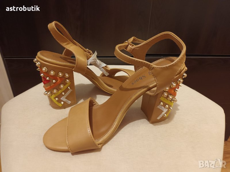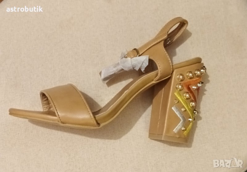 Сандали с интересен ток/бежови/ → Обява 42706244