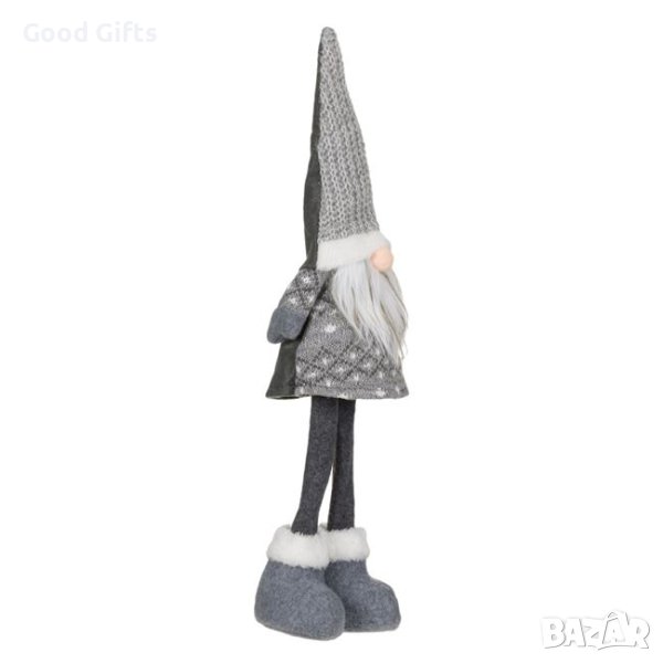 Коледен Гном в сив костюм, пухкава шапка и брада.