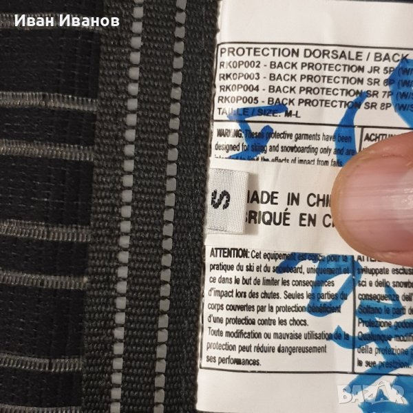гръбен протектор rossignol . Размер S