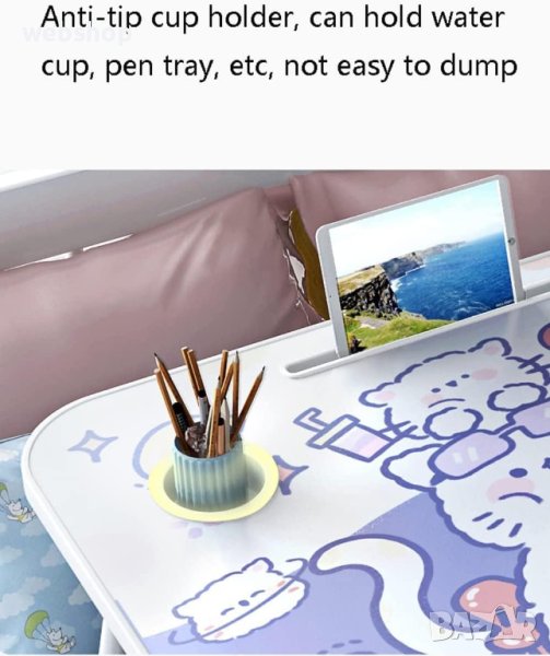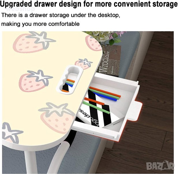 Детска масичка с чекмедже и място за чаша. С 4 USB порта, вентилатор, LED лампа и място за таблет или телефон. 👌💯
