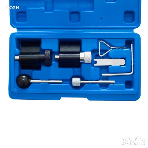 Професионалният комплект за заключване на ангренажния механизъм ви позволява да заключите ангренажния механизъм в сервизно положение при смяна на ангренажния ремък. Специалната форма на ключалките позволява прецизна настройка на контролните точки на запалване.