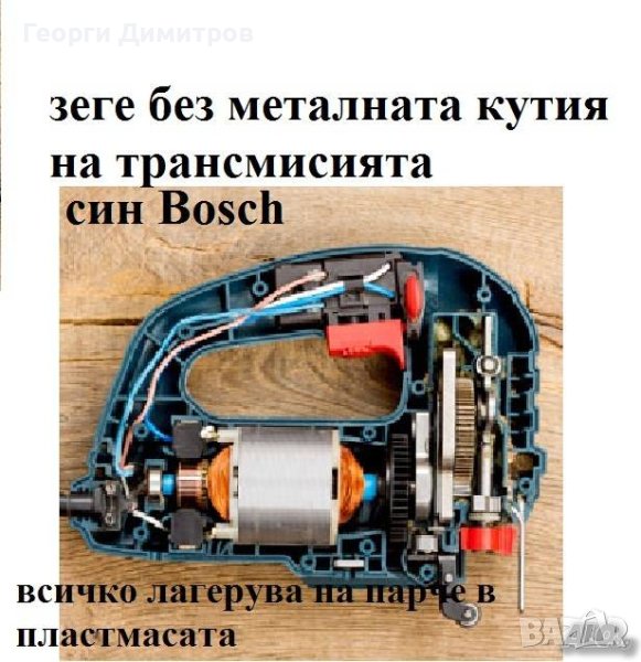 Зегето е много сериозно. Дал съм снимки - това зеге е като 220 - волтовите истински сини зегета, и няма нищо общо с новите измишльотини Li ion. Просто се шашнах каква тъпотия са новите акумулаторни сини зегета на Бош - направо времянки, за маса пари. Всичко е като на зелените зегета от едно време - механика, бутало и т.н.- само че със син цвят е корпуса, и умопомрачаваща цена. Иначе на външен вид са го докарали, като че ли е нещо супер яко - да ама не. На всичко отгоре изцяло са черупков тип - два капака пластмасови затварят всичко и всичко лагерува в тях. На Макита акумулаторното зеге Li ion е направо като космически кораб пред тази простотия на Бош - дал съм снимка за сравнение. Над 300лв. струва бодито ново на този пълен та.. к на Бош, а има и обяви за употребявани такива за 200лв. и повече - всеки да си решава сам.