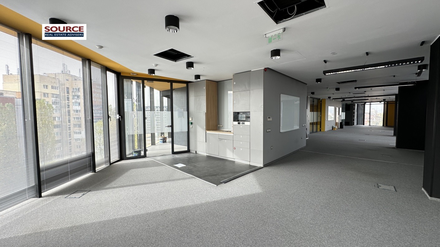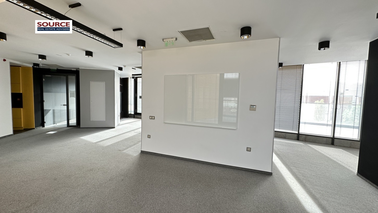 2. Разпределение: 1 големи Open space помещения, 8 отделни работни помещения преградени със стъклени и гипсокартонени преградни стени, оборудвана кухня, рецепция, 6 wc, тераса. Офисът може да бъде изцяло с Open space разпределение или допълнително преграден според изискванията на Наемателя.