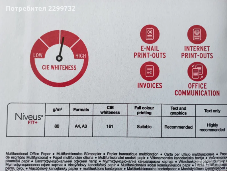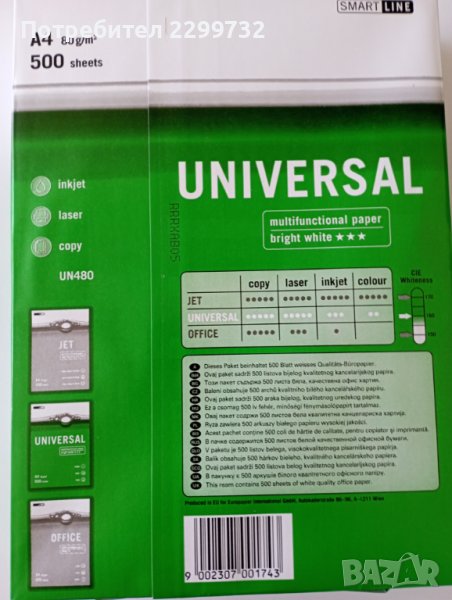Многофункционална хартия. Подходяща за всички видове лазерни и мастиленоструйни принтери, копирни машини и факс апарати.