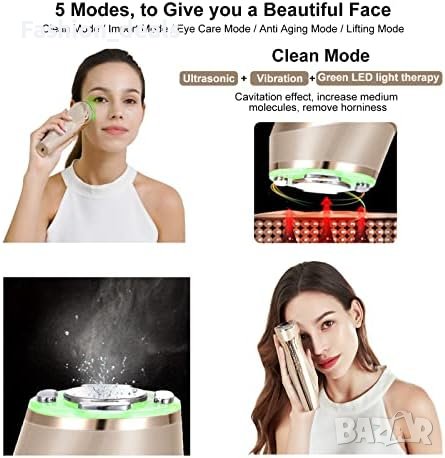 - 5 в 1: ултразвук, масаж на лицето, радиочестота, микроток и LED терапия