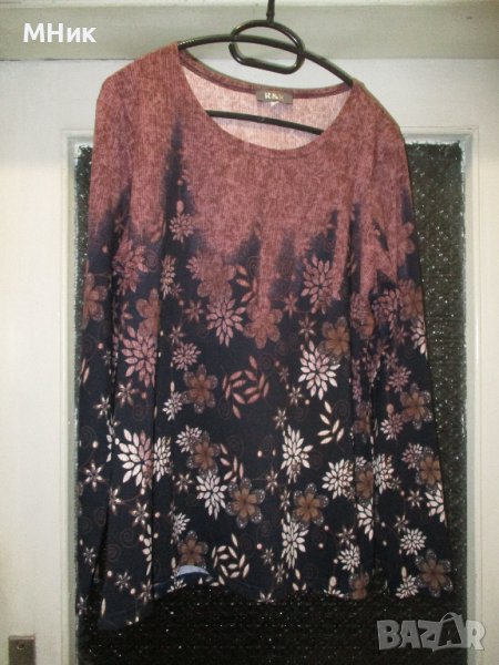 Дамска блуза с дълъг ръкав. Мека материя. Размери: дължина 64 см, ширина под мишниците 52 см, рамене 39 см.