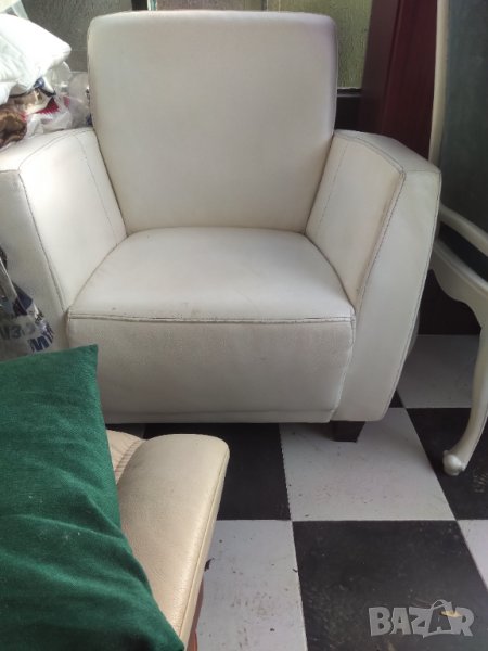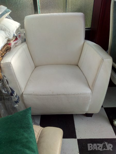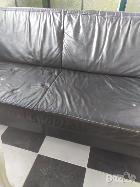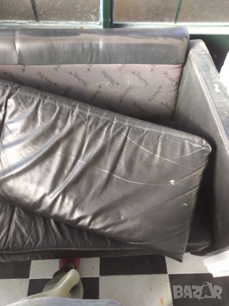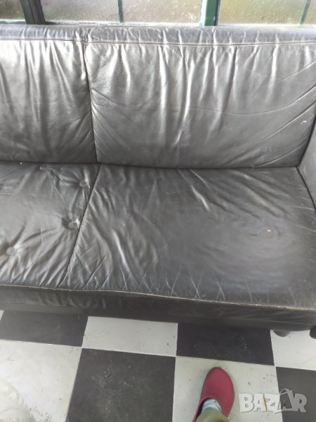 Естествена кожа диван двойка черен с размер 150 дължина без облегалките и ширина 66 см ,възглавниците се махат .