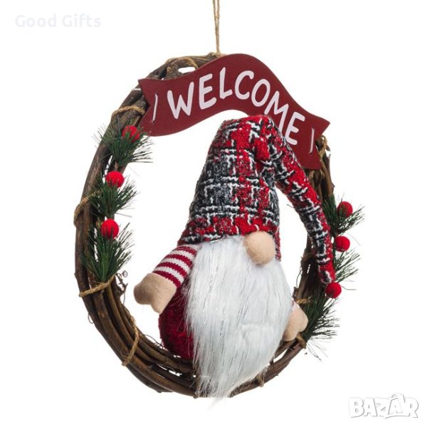 Коледен венец с Коледен Дядо Коледа Гном, 35см Welcome