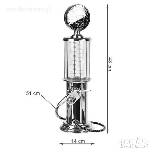 Диспенсърите за напитки са атрактивен и практичен начин да поднесете разхлаждащи питиета на своето парти. Със сигурност гостите ви ще бъдат впечатлени от бирата, сервирана в диспенсър във формата на ретро бензинова колонка. Освен нестандартен, диспенсърът е и много практичен. Без подаване на бутилки или складирането им върху масата, което ви пречи да видите човека от другата страна на масата. Ретро бензинова колонка за бира има автентичната визия на колонките за гориво от 30-те години на миналия век. Моделът е страхотен избор и за подарък, особено на любителите на бира. Резервоарът е произведен от прозрачна пластмаса, която позволява да се следи количеството на течността вътре. Побира 900 мл. и се пълни изключително лесно. Отворът е достатъчно широк, за да може да пуснете парченца лед и да охладите напитката.