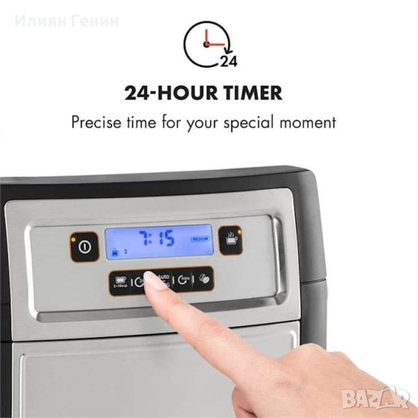Сутрин, изпълнена с удоволствие: кафе машината Klarstein Aromatica II Duo с вградена мелница се грижи за различните степени на смилане, а практичният таймер се грижи за ежедневните моменти с неповторимо кафе.