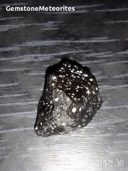 The fusion crust is black, glossy, shiny, looks like black opaque shiny glass, a similar crust is formed by Martian meteorites. The stone is cold to the touch, This is an extremely rare meteorite