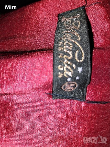 Черна дантела със сатенена,еластична, червена подплата от талията с 4 отвесни банела ,презрамката е от еластичен прозрачен тюл, отпред е на волани/ плисета от еластична материя, закопчаването е отзад с цип има и сатенена лента за регулиране на размера по тялото. Подгръдна 44 до 50 см едностранно, талия 49 до 45 см едностранно, ханш 42 до 50 см едностранно, полата е тип молив в най долната част е 39 до 45 см едностранно, дължина от подмишници 70 см .Няма забележки.