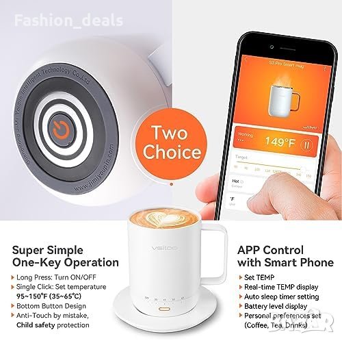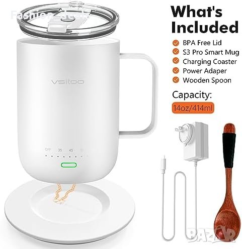 Чаша с температурен контрол: Идеално топли напитки между 35℃ и 65℃.