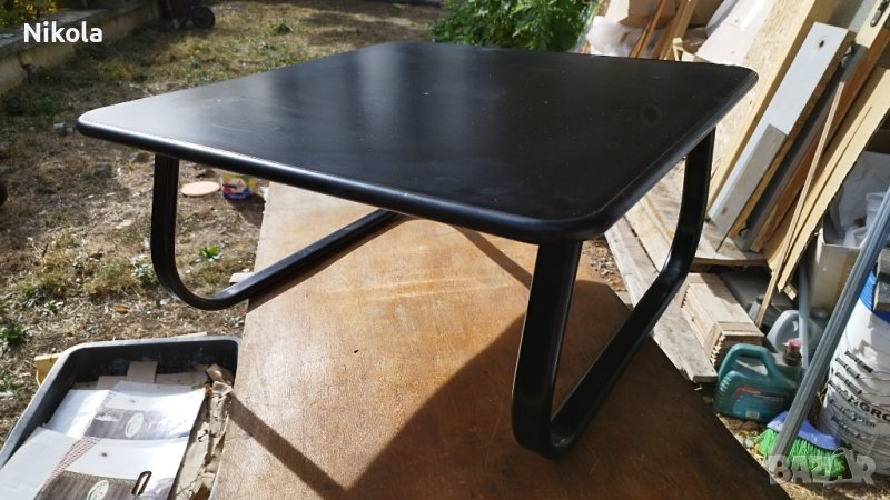 Продавам ниска черна маса с метални крака с размер 70/70см и височина 33см. Масата може да се използва като помощна маса или като основна маса в офиса и в къщи. Масата е здрава като забележки може да се посочат някоя дребна драскотини , имам 3 бр , цената от 53лв е за брой.