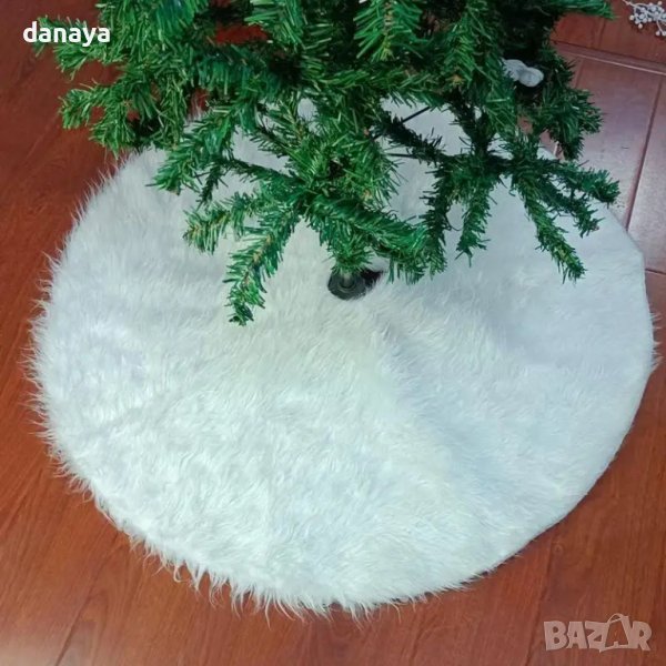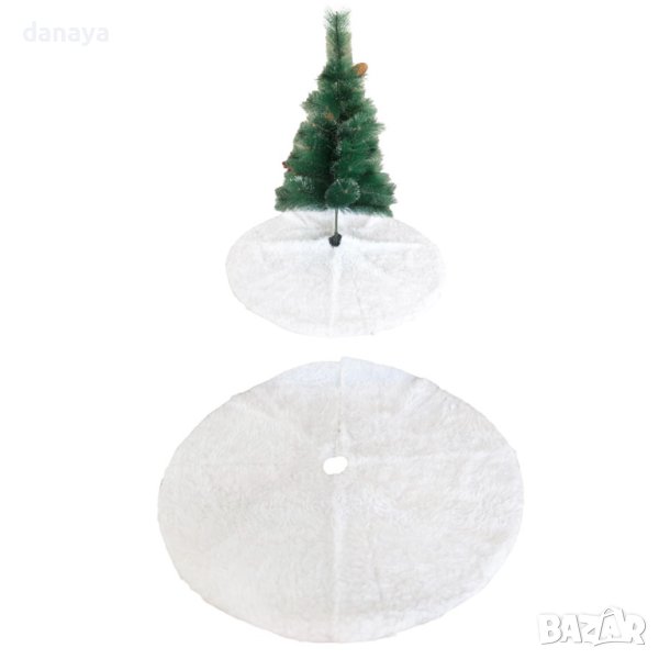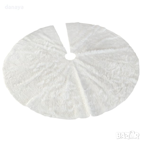 Коледна подложка за елха. Бяла пухена постелка за под елха. Тя е с диаметър 88 см, което е достатъчно, за да скрие рамката на елхата и да създаде топла празнична украса. Снежен и елегантен, килимът перфектно допълва коледното дърво.