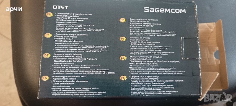 Безжичен телефон DECT Sagemcom D14T, Caller ID, Тел. указател 50 контакта, Черно-бял дисплей, Черен