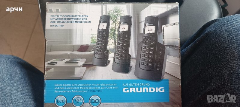 Нов безжичен стационарен телефонен апарат DECT Cordless Phone Grundig D150a TRIO, снимка 1 - Стационарни телефони и факсове - 42727760 Нов безжичен стационарен телефонен апарат DECT Cordless Phone Grundig D150a TRIO, снимка 2 - Стационарни телефони и факсове - 42727760 Нов безжичен стационарен телефонен апарат DECT Cordless Phone Grundig D150a TRIO, снимка 3 - Стационарни телефони и факсове - 42727760 Нов безжичен стационарен телефонен апарат DECT Cordless Phone Grundig D150a TRIO, снимка 4 - Стационарни телефони и факсове - 42727760 1/4