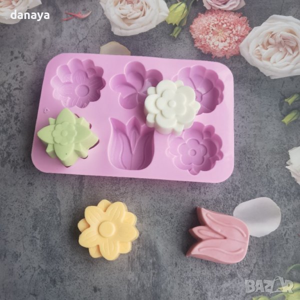 Силиконова форма за мъфини, соленки, пудинги, отливки от шоколад и други вкусотии. Тавичката съдържа 6 гнезда с форма на пролетни цветя. Подходяща за печене или замразяване. Издържа на темепература от -40 до 230 градуса. Незалепващо покритие.