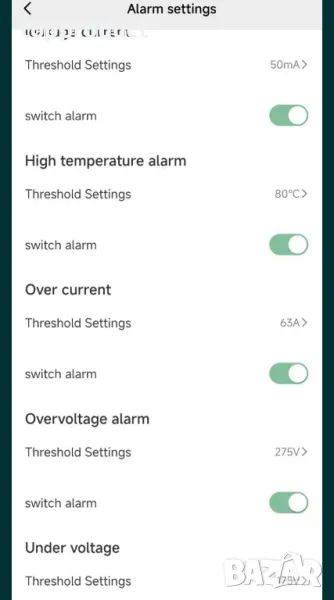- Може да зададе пренапрежение/под напрежение, свръхток, ток на утечка;