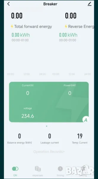 - Преглед на ток, напрежение, ток на утечка, общ kWh на телефона