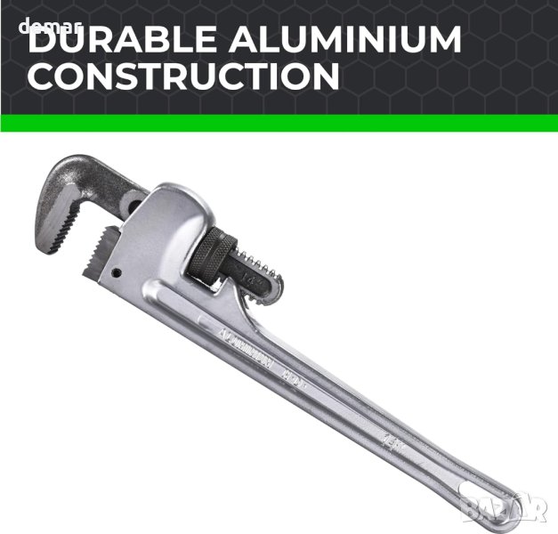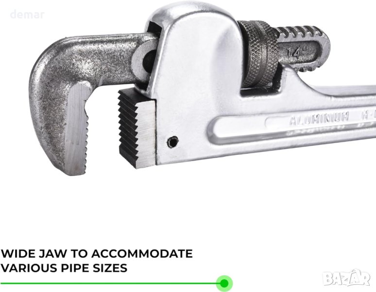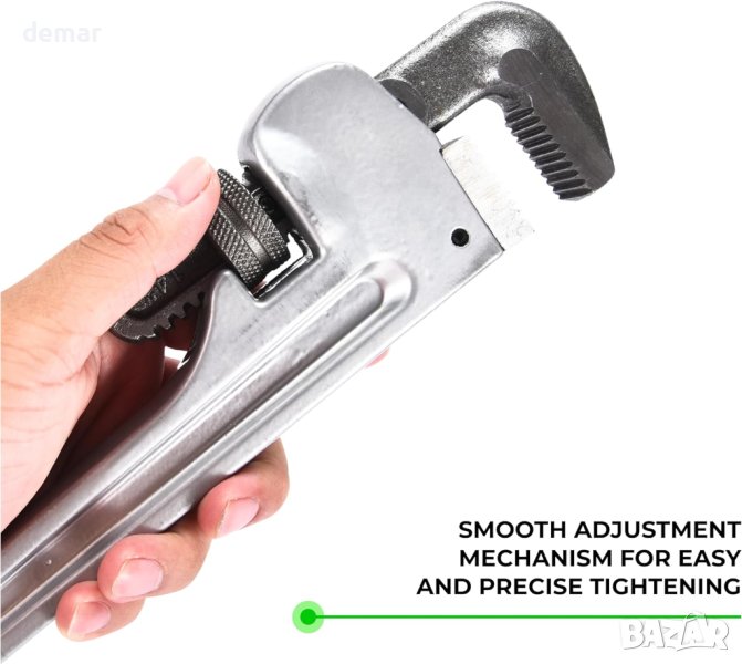 тръбен ключ Toolzilla е здрав инструмент, изработен от издръжлив алуминий, осигуряващ дълготрайност и първокласна производителност за всички водопроводни нужди. Той може да се похвали с широк капацитет на челюстта за гъвкавост, съчетан с плавен механизъм за регулиране за прецизност. Удобната нехлъзгаща се дръжка осигурява максимален захват и минимизирана умора, което го прави предпочитан гаечен ключ както за професионалисти, така и за любители на „Направи си сам“, които се справят с различни водопроводни задачи.