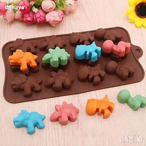 Формата съдържа 12 гнезда с 4 различни вида динозавърчета. Изработена е от висококачествен термо и студоустойчив силикон, който издържа на температура от – 40 до 230 °С. Лесна за почистване и удобна за употреба, тази форма ще ви стане любима за творене на бонбони. Подходяща за употреба със шоколад, желе, захарно тесто и др.