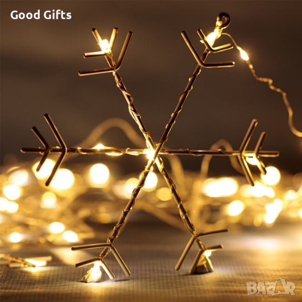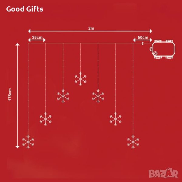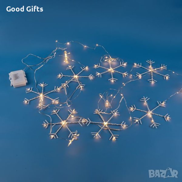 Коледни лед лампички тип завеса със 7 снежинки 15х15 см, идеални за украса на коледната елха, прозорец и цялата къща.