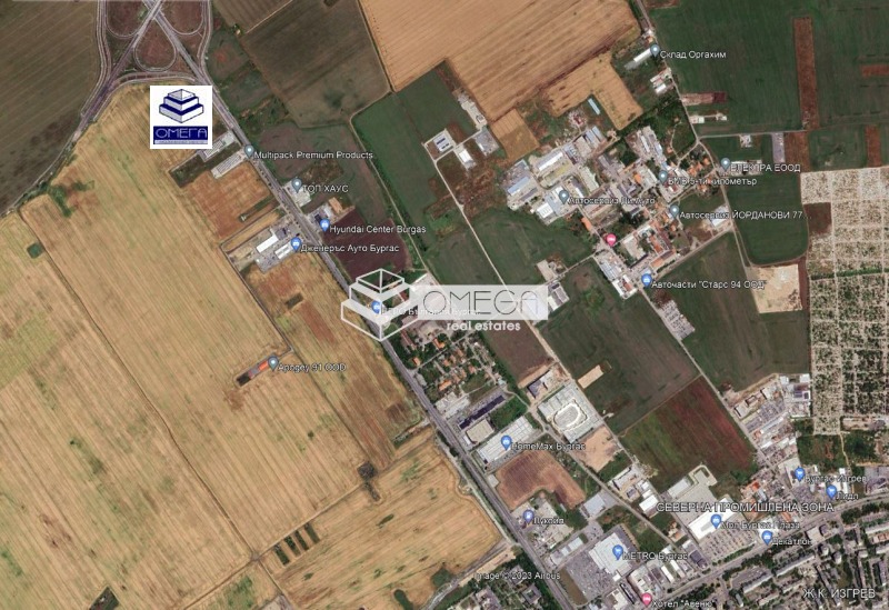 ОМЕГА продава урегулиран поземлен имот находящ се на главен път Бургас-София, между новоизградената детелина и кръговото на Бургас. Имотът е с площ от 15дка и има лице на главен път. Разполага с всички необходими комуникации - ток, вода, локален път.