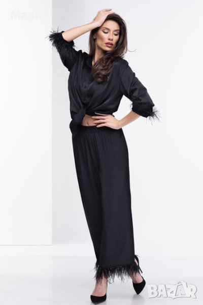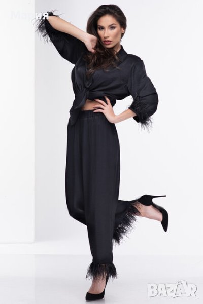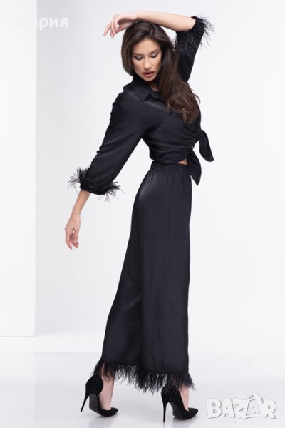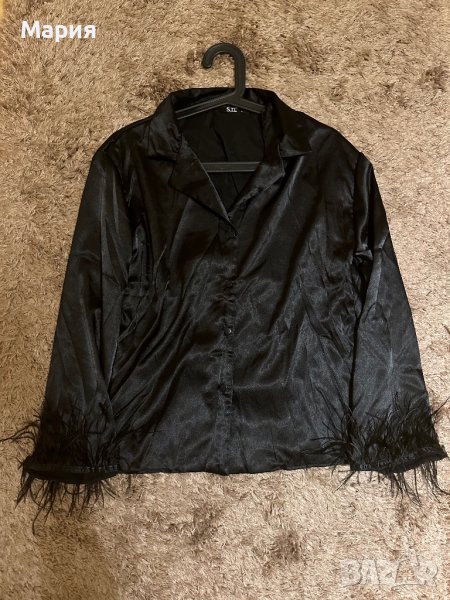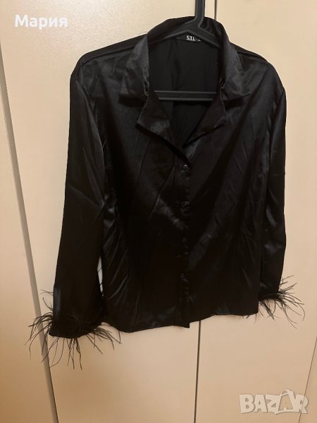 Дамска сатенена риза с щраусови пера. Налични размери - XS, S, M, L