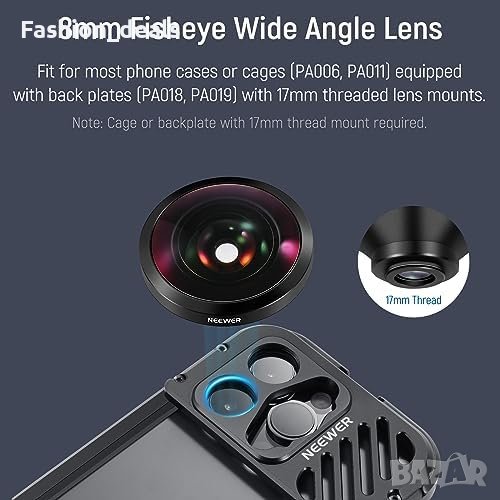 Нов NEEWER Обектив 8mm Fisheye 220° за iPhone 15, 14, Samsung Galaxy