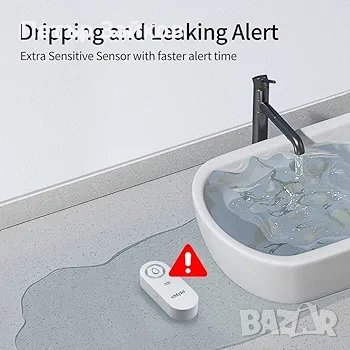 Захранване от батерия и напомняне за изтощена батерия: WiFi сензорът за вода се захранва от 2 AAA батерии (включени), батерията издържа повече от половин година и можете да видите мощността на батерията в приложението. Когато зарядът на батерията е под 5 процента, приложението ще изпрати известието.