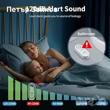 120 dB силна аларма: Wifi сензорът за изтичане на вода има 120 dB ултра силна аларма, когато открие изтичане на вода, той ще издаде силен алармен звук, може да се чуе дори в мазето, което може ефективно да информира член на вашето семейство и да предотврати вода изтичане във времето.