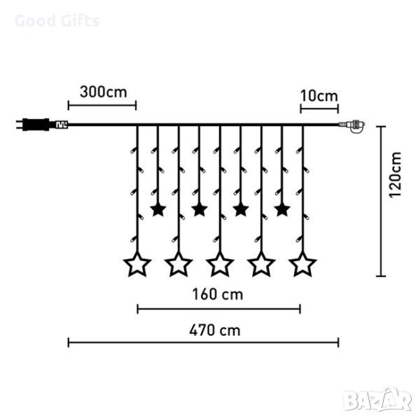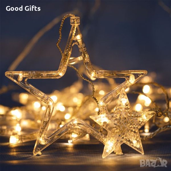 Коледни лед лампички тип завеса със звезди (5 големи и 4 малки), идеални за украса на коледната елха, прозорец и цялата къща.